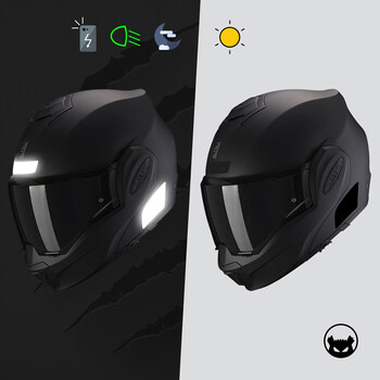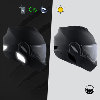 - Dimensioni NF: taglia conforme alla legislazione francese che rende obbligatoria l'apposizione di 4 adesivi retroriflettenti sui caschi da moto.