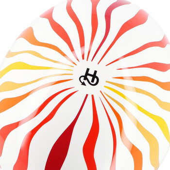 - Base bianca ornata da linee colorate per uno stile retrò di ispirazione anni '70.