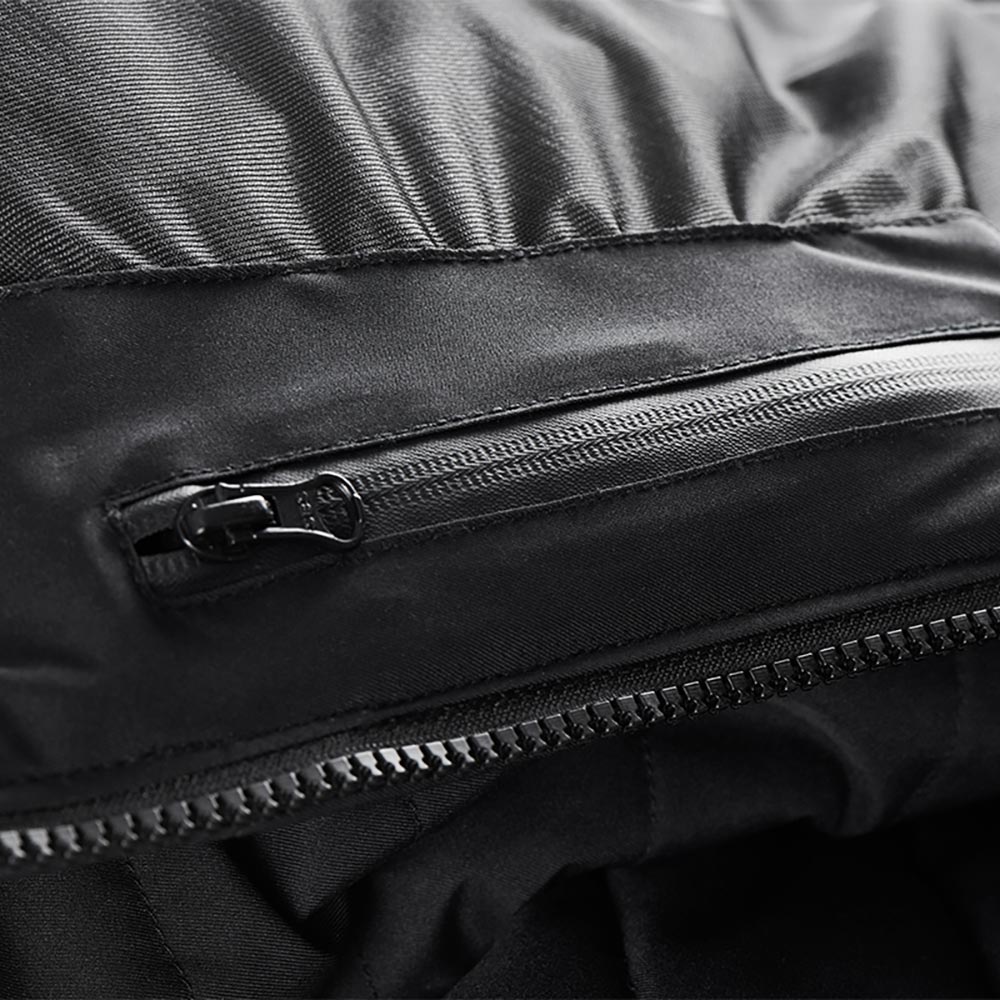 - La fodera impermeabile e traspirante Humax® ultra-stretch rimovibile mantiene il corpo del motociclista asciutto e permette la fuoriuscita dell'umidità. Può essere indossata sopra o sotto la giacca.