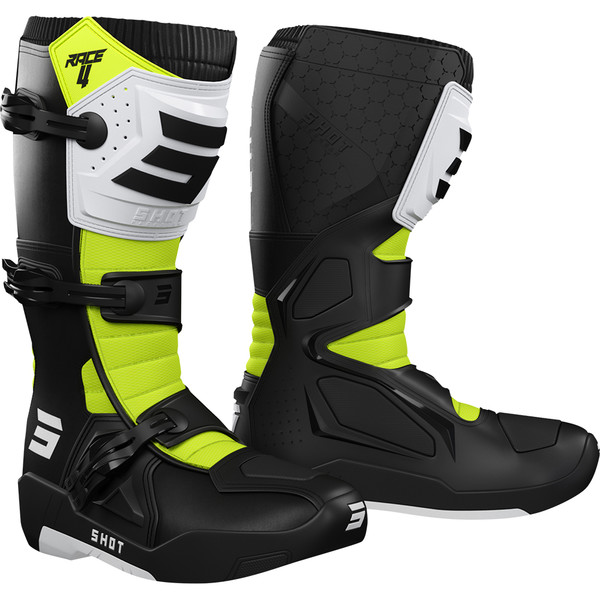 Shot - Stivali da gara 4 Nero / Giallo fluorescente / Bianco
